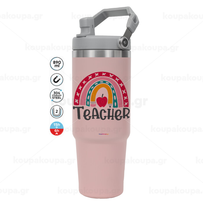 Rainbow teacher, Pink color, 890ml (30oz) stainless Steel Tumbler with Handle