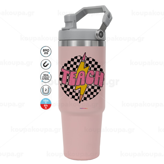 Teach, Pink color, 890ml (30oz) stainless Steel Tumbler with Handle