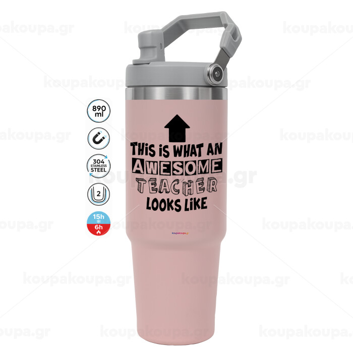 This is what an awesome teacher looks like!!! , Pink color, 890ml (30oz) stainless Steel Tumbler with Handle