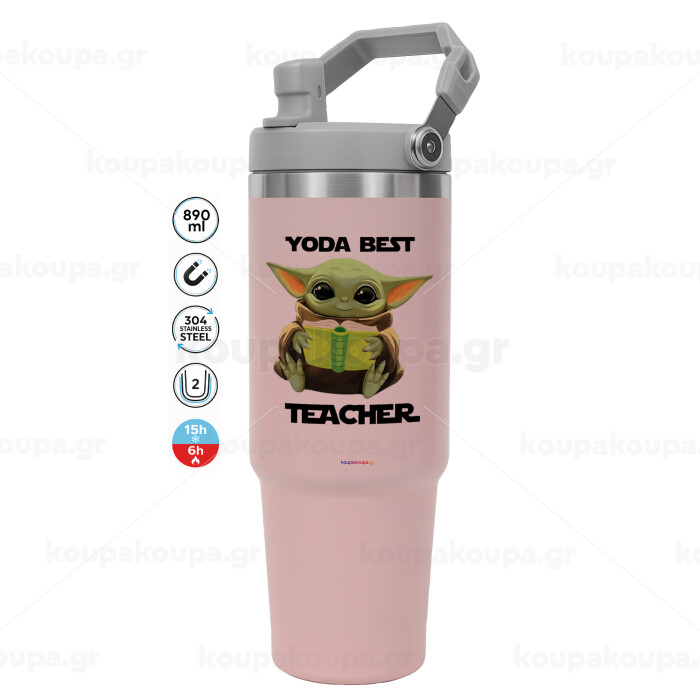 Yoda Best Teacher, Pink color, 890ml (30oz) stainless Steel Tumbler with Handle
