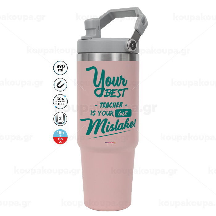 Your best teacher is your last mistake, Pink color, 890ml (30oz) stainless Steel Tumbler with Handle
