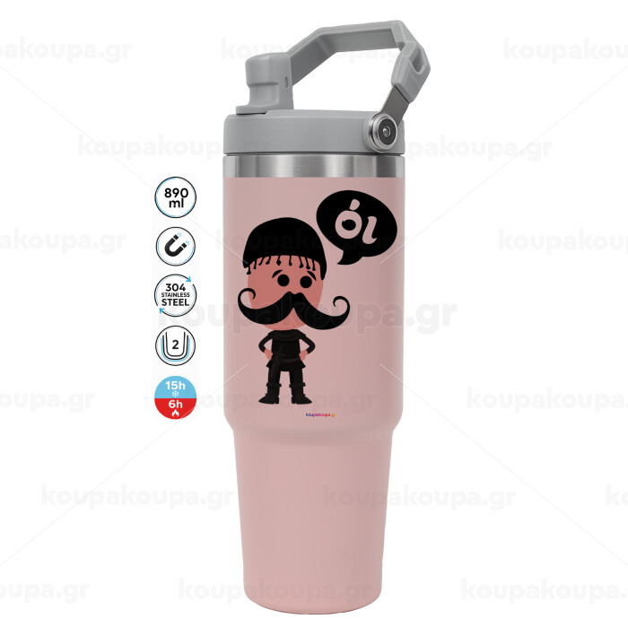 Κρητικός "Οι", Pink color, 890ml (30oz) stainless Steel Tumbler with Handle