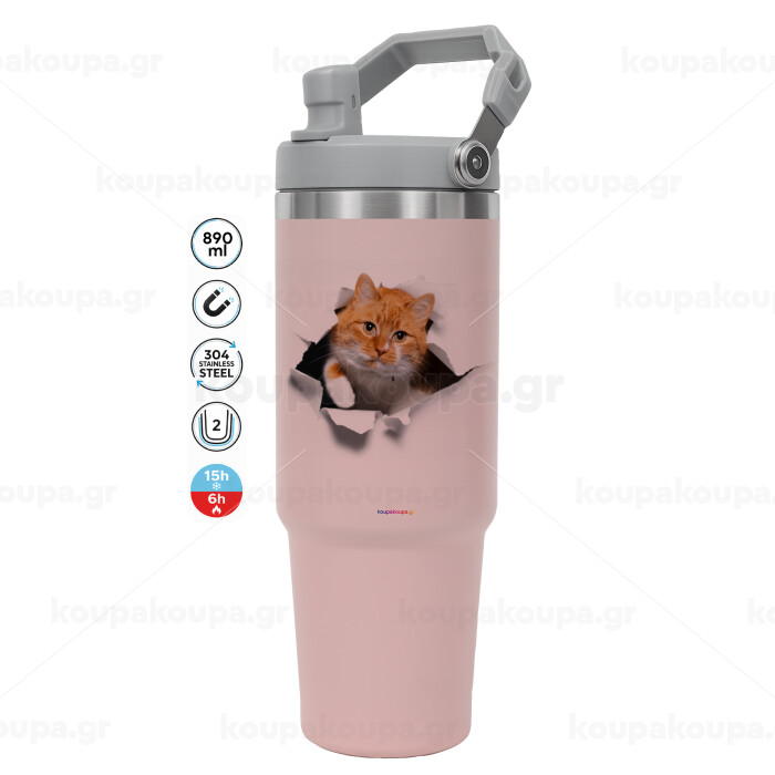 Cat cracked, Pink color, 890ml (30oz) stainless Steel Tumbler with Handle