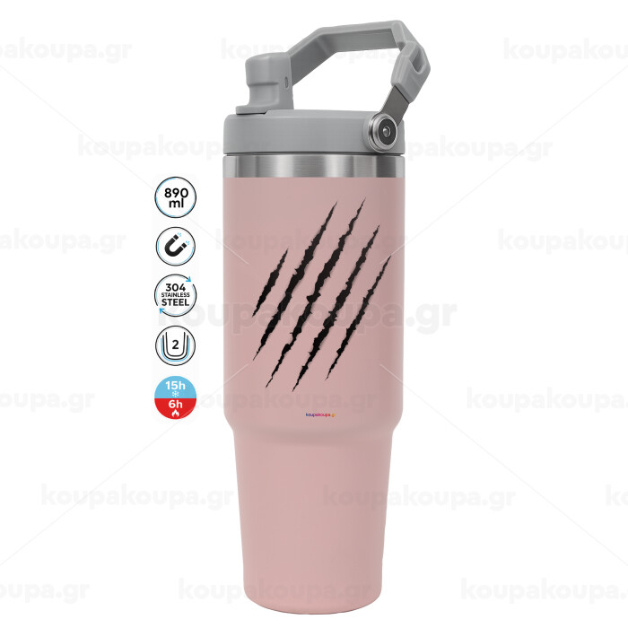 Claw scratch, Pink color, 890ml (30oz) stainless Steel Tumbler with Handle