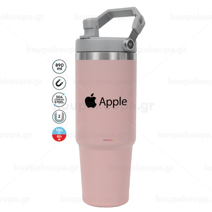 apple, Pink color, 890ml (30oz) stainless Steel Tumbler with Handle