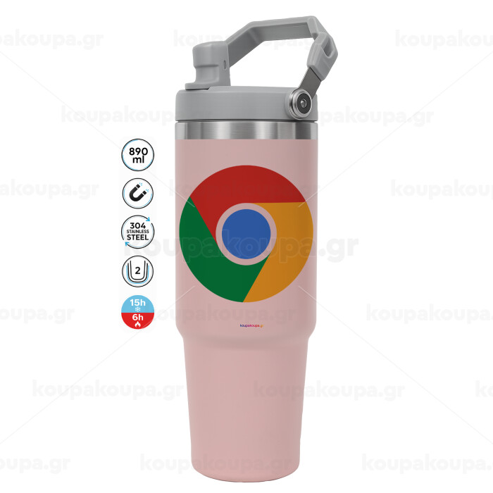 Chrome, Pink color, 890ml (30oz) stainless Steel Tumbler with Handle
