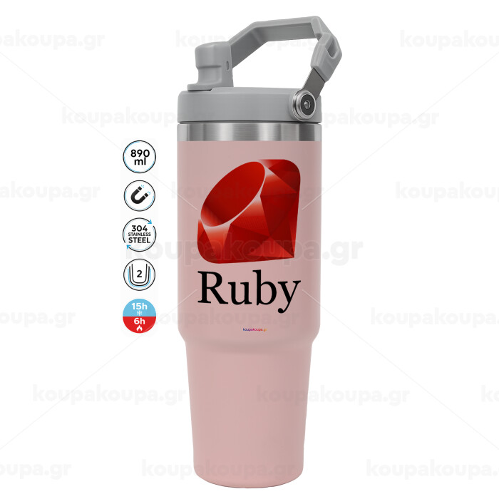Ruby, Pink color, 890ml (30oz) stainless Steel Tumbler with Handle