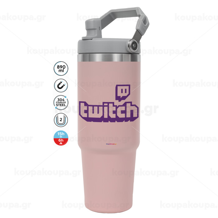 Twitch, Pink color, 890ml (30oz) stainless Steel Tumbler with Handle