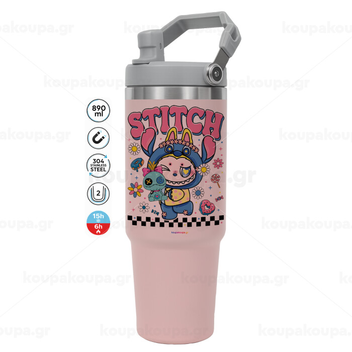 Labubu Stitch, Pink color, 890ml (30oz) stainless Steel Tumbler with Handle