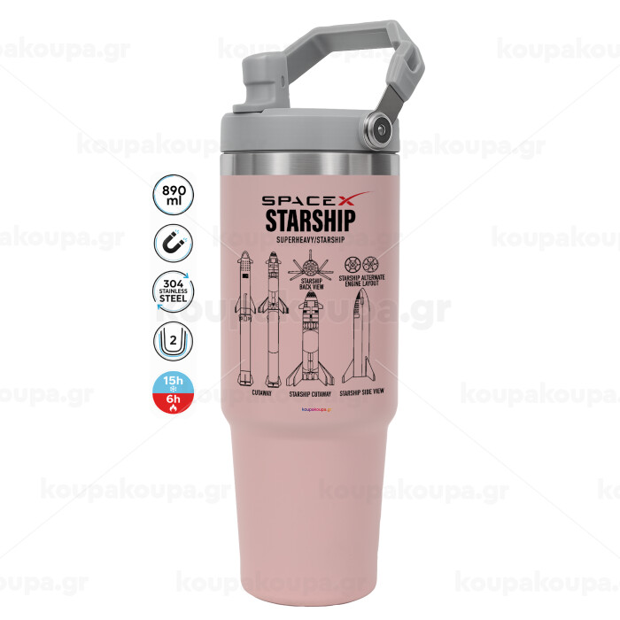 Space X, Pink color, 890ml (30oz) stainless Steel Tumbler with Handle