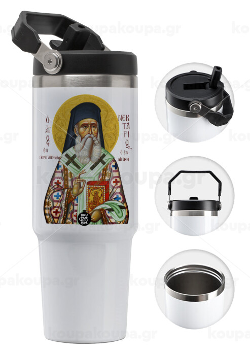 Saint Nektarios, 30oz stainless Steel Tumbler with Handle