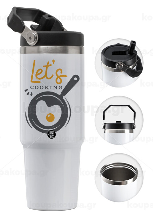 Let's cooking, 30oz stainless Steel Tumbler with Handle