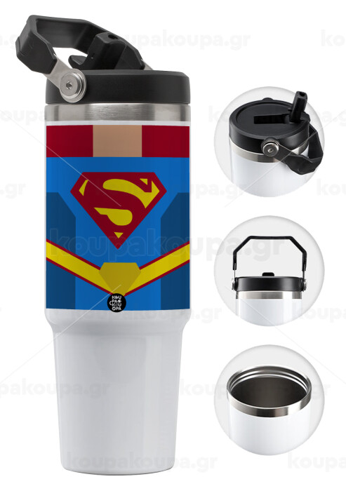 Superman flat, 30oz stainless Steel Tumbler with Handle