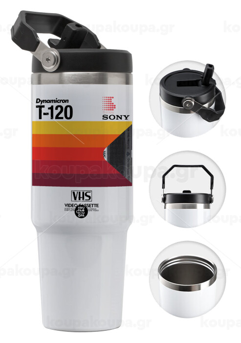 VHS sony dynamicron T-120, 30oz stainless Steel Tumbler with Handle