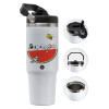 Discover the Stainless Steel Thermos 30oz with Handle, the ideal companion for every moment of the day, at home, at work or on the go. Made from 304 stainless steel on the inside, safe for food, and 201 stainless steel on the outside for maximum durability in use. It keeps your beverage hot for up to 12 hours and cool for up to 6 hours, ideal for coffee, tea, water or soft drinks. Large volume for hydration all day without frequent refills. Design with built-in straw and handle for comfortable use and easy transport everywhere. Thanks to the large opening, it is easily cleaned after each use.