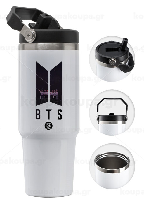 Discover the Stainless Steel Thermos 30oz with Handle, the ideal companion for every moment of the day, at home, at work or on the go. Made from 304 stainless steel on the inside, safe for food, and 201 stainless steel on the outside for maximum durability in use. It keeps your beverage hot for up to 12 hours and cool for up to 6 hours, ideal for coffee, tea, water or soft drinks. Large volume for hydration all day without frequent refills. Design with built-in straw and handle for comfortable use and easy transport everywhere. Thanks to the large opening, it is easily cleaned after each use.
