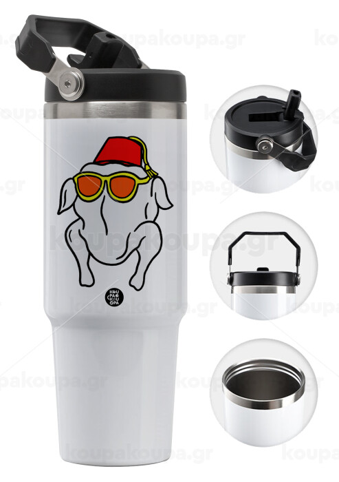 Discover the Stainless Steel Thermos 30oz with Handle, the ideal companion for every moment of the day, at home, at work or on the go. Made from 304 stainless steel on the inside, safe for food, and 201 stainless steel on the outside for maximum durability in use. It keeps your beverage hot for up to 12 hours and cool for up to 6 hours, ideal for coffee, tea, water or soft drinks. Large volume for hydration all day without frequent refills. Design with built-in straw and handle for comfortable use and easy transport everywhere. Thanks to the large opening, it is easily cleaned after each use.
