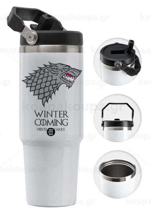 GOT House of Starks, winter coming, 30oz stainless Steel Tumbler with Handle