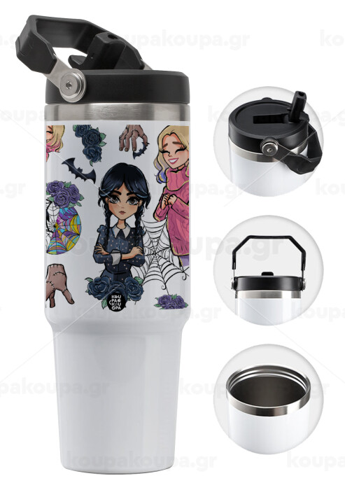 Wednesday and Enid Sinclair, 30oz stainless Steel Tumbler with Handle