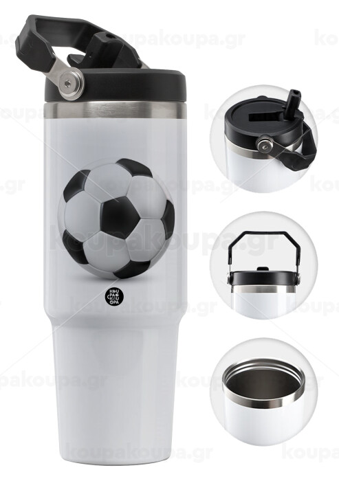 Soccer ball, 30oz stainless Steel Tumbler with Handle