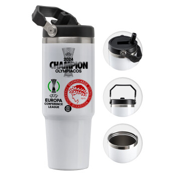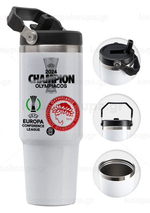 Olympiacos UEFA Europa Conference League Champion 2024, 30oz stainless Steel Tumbler with Handle