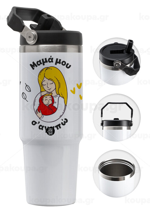 Μανούλα σ'αγαπώ αγκαλιά!, 30oz stainless Steel Tumbler with Handle