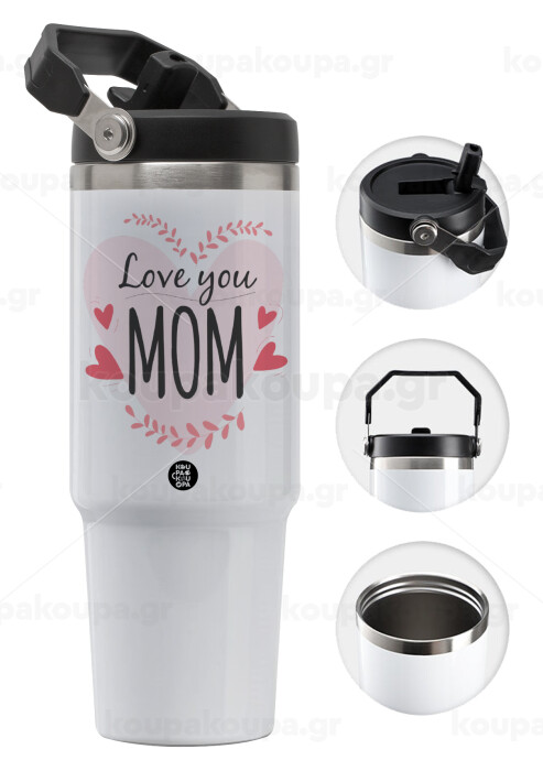 Mother's day I Love you Mom heart, 30oz stainless Steel Tumbler with Handle