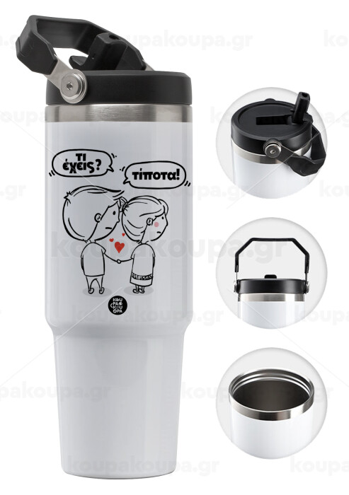 Τι έχεις? Τίποτα!, 30oz stainless Steel Tumbler with Handle
