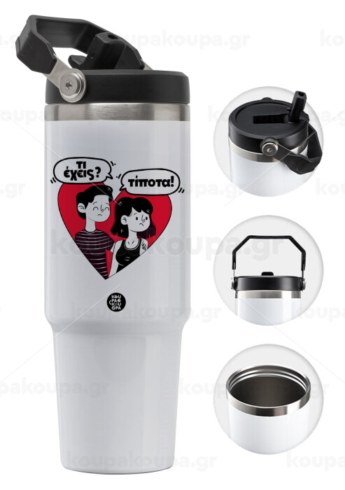 Τι έχεις? Τίποτα!, 30oz stainless Steel Tumbler with Handle