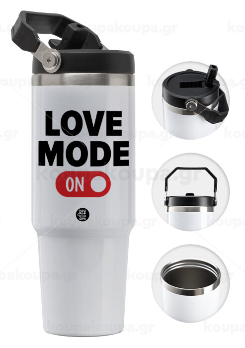 LOVE MODE ON, 30oz stainless Steel Tumbler with Handle