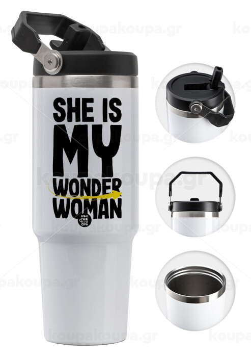 She is my wonder woman, 30oz stainless Steel Tumbler with Handle