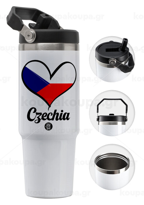 Czechia flag, 30oz stainless Steel Tumbler with Handle
