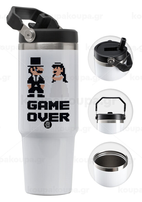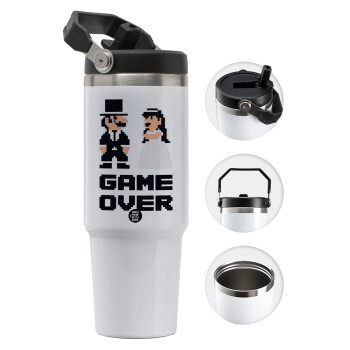 8bit Game Over Couple Wedding, 30oz stainless Steel Tumbler with Handle