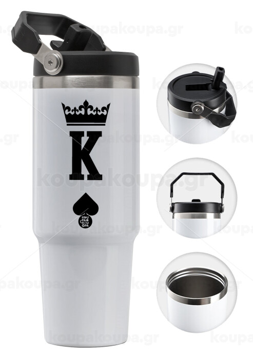 Discover the Stainless Steel Thermos 30oz with Handle, the ideal companion for every moment of the day, at home, at work or on the go. Made from 304 stainless steel on the inside, safe for food, and 201 stainless steel on the outside for maximum durability in use. It keeps your beverage hot for up to 12 hours and cool for up to 6 hours, ideal for coffee, tea, water or soft drinks. Large volume for hydration all day without frequent refills. Design with built-in straw and handle for comfortable use and easy transport everywhere. Thanks to the large opening, it is easily cleaned after each use.