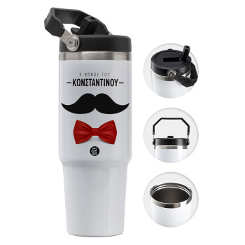Ο νονός μου, μουστάκι με παπιγιόν, 30oz stainless Steel Tumbler with Handle