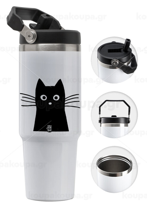 Black Cat, 30oz stainless Steel Tumbler with Handle