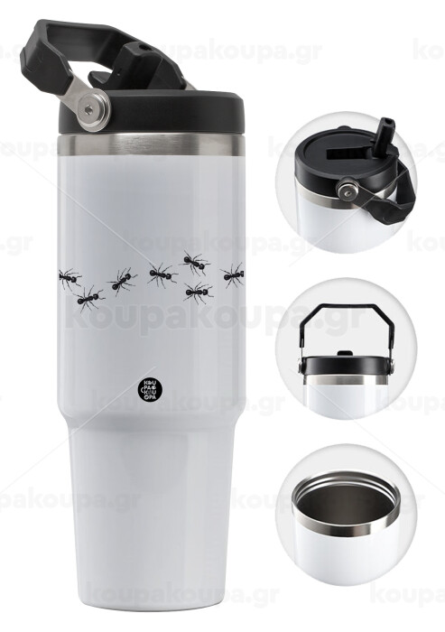 Discover the Stainless Steel Thermos 30oz with Handle, the ideal companion for every moment of the day, at home, at work or on the go. Made from 304 stainless steel on the inside, safe for food, and 201 stainless steel on the outside for maximum durability in use. It keeps your beverage hot for up to 12 hours and cool for up to 6 hours, ideal for coffee, tea, water or soft drinks. Large volume for hydration all day without frequent refills. Design with built-in straw and handle for comfortable use and easy transport everywhere. Thanks to the large opening, it is easily cleaned after each use.