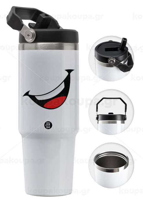 Φατσούλα γελάω!!!, 30oz stainless Steel Tumbler with Handle
