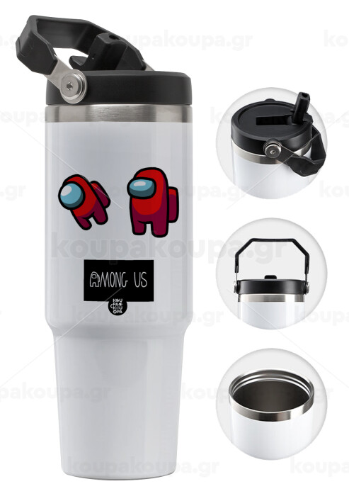 Discover the Stainless Steel Thermos 30oz with Handle, the ideal companion for every moment of the day, at home, at work or on the go. Made from 304 stainless steel on the inside, safe for food, and 201 stainless steel on the outside for maximum durability in use. It keeps your beverage hot for up to 12 hours and cool for up to 6 hours, ideal for coffee, tea, water or soft drinks. Large volume for hydration all day without frequent refills. Design with built-in straw and handle for comfortable use and easy transport everywhere. Thanks to the large opening, it is easily cleaned after each use.