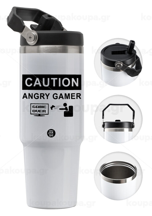 Caution, angry gamer!, 30oz stainless Steel Tumbler with Handle