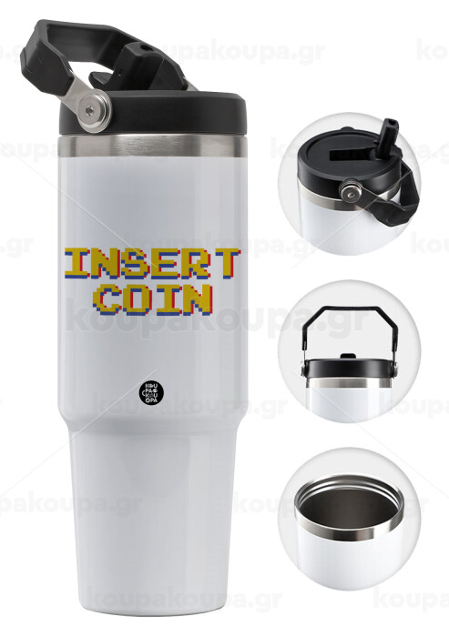 Insert coin!!!, 30oz stainless Steel Tumbler with Handle