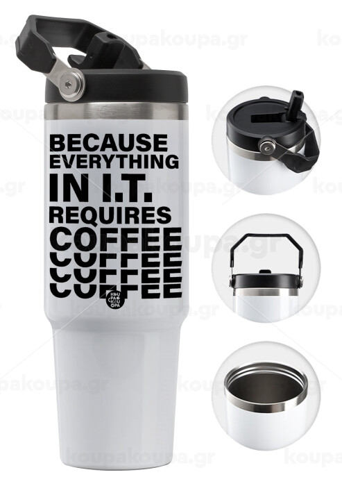 Because everything in I.T. requires coffee, 30oz stainless Steel Tumbler with Handle