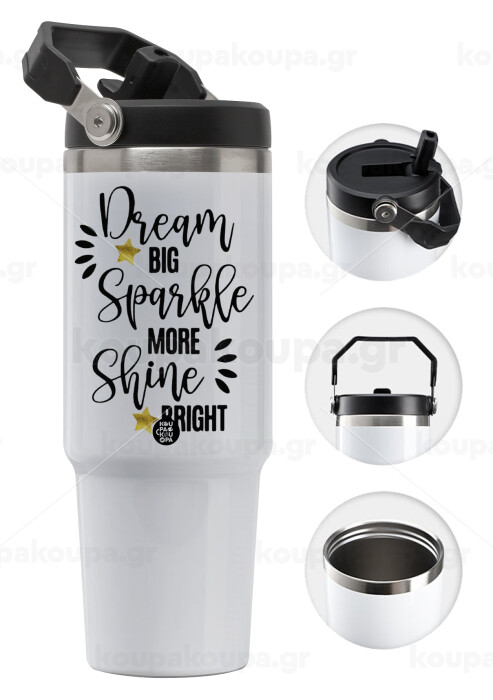 Discover the Stainless Steel Thermos 30oz with Handle, the ideal companion for every moment of the day, at home, at work or on the go. Made from 304 stainless steel on the inside, safe for food, and 201 stainless steel on the outside for maximum durability in use. It keeps your beverage hot for up to 12 hours and cool for up to 6 hours, ideal for coffee, tea, water or soft drinks. Large volume for hydration all day without frequent refills. Design with built-in straw and handle for comfortable use and easy transport everywhere. Thanks to the large opening, it is easily cleaned after each use.