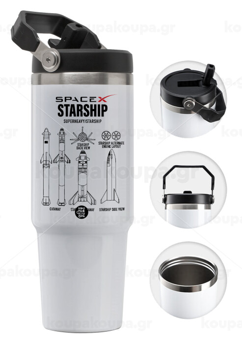 Discover the Stainless Steel Thermos 30oz with Handle, the ideal companion for every moment of the day, at home, at work or on the go. Made from 304 stainless steel on the inside, safe for food, and 201 stainless steel on the outside for maximum durability in use. It keeps your beverage hot for up to 12 hours and cool for up to 6 hours, ideal for coffee, tea, water or soft drinks. Large volume for hydration all day without frequent refills. Design with built-in straw and handle for comfortable use and easy transport everywhere. Thanks to the large opening, it is easily cleaned after each use.