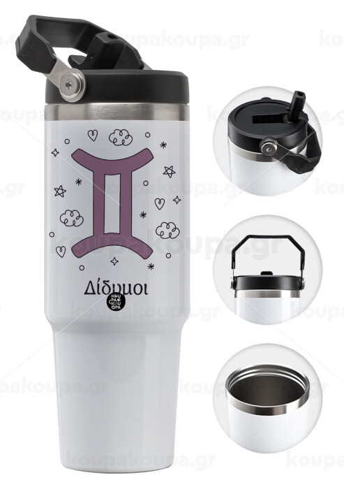 Ζώδια Δίδυμοι, 30oz stainless Steel Tumbler with Handle