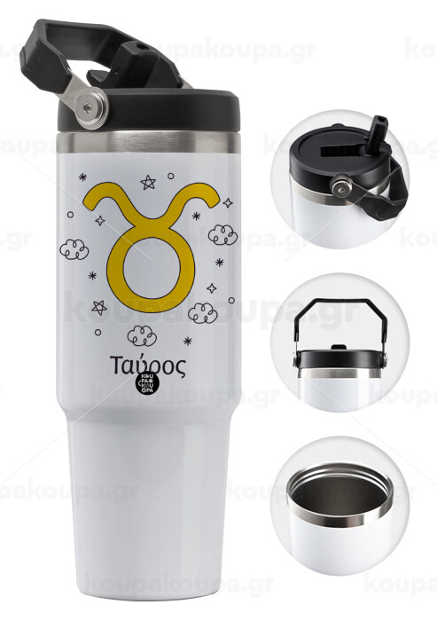 Ζώδια Ταύρος, 30oz stainless Steel Tumbler with Handle