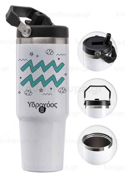 Ζώδια Υδροχόος, 30oz stainless Steel Tumbler with Handle
