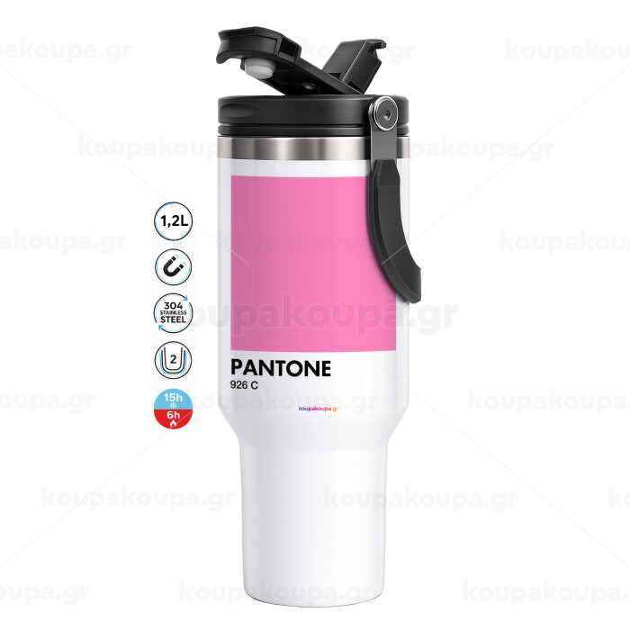 PANTONE Pink C, Mega Stainless steel Tumbler with lid, double wall 1,2L