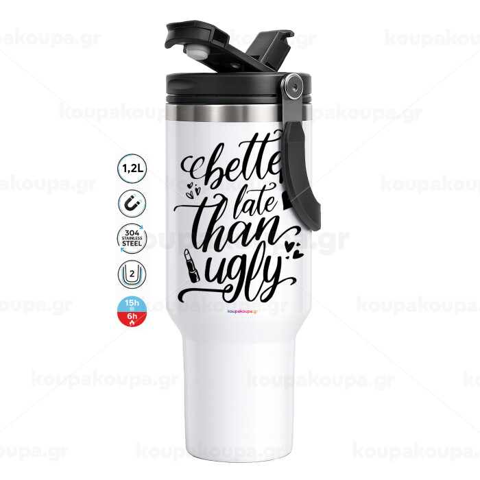 Better late than ugly, Mega Stainless steel Tumbler with lid, double wall 1,2L