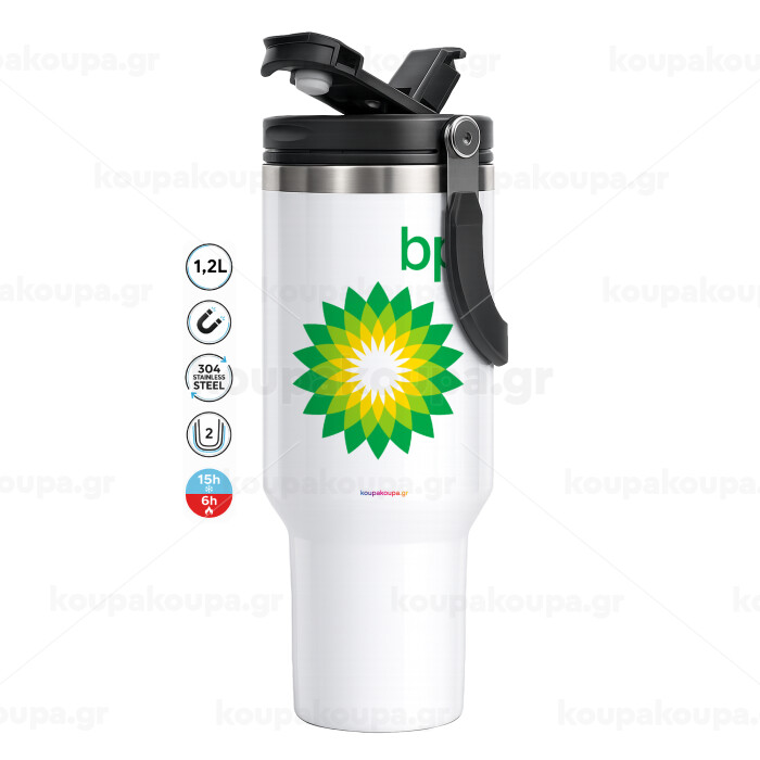 Πρατήριο καυσίμων BP, Mega Stainless steel Tumbler with lid, double wall 1,2L